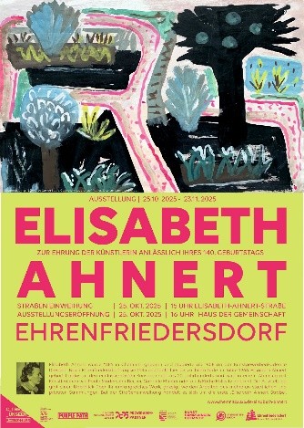 Elisabeth Ahnert zog 1945 nach Ehrenfriedersdorf, wo sie bis zu ihrem Tod im Jahr 1966 lebte und arbeitete. Ihre tiefe Verbundenheit mit dem Ort wird nun in besonderer Weise gewürdigt: Am 25. Oktober 2025 erfolgt die feierliche Einweihung der ersten „Elisabeth-Ahnert-Straße“ – ein symbolischer Akt, der nicht nur lokalgeschichtliche Bedeutung hat, sondern auch eine längst überfällige Ehrung ihres künstlerischen Vermächtnisses darstellt.